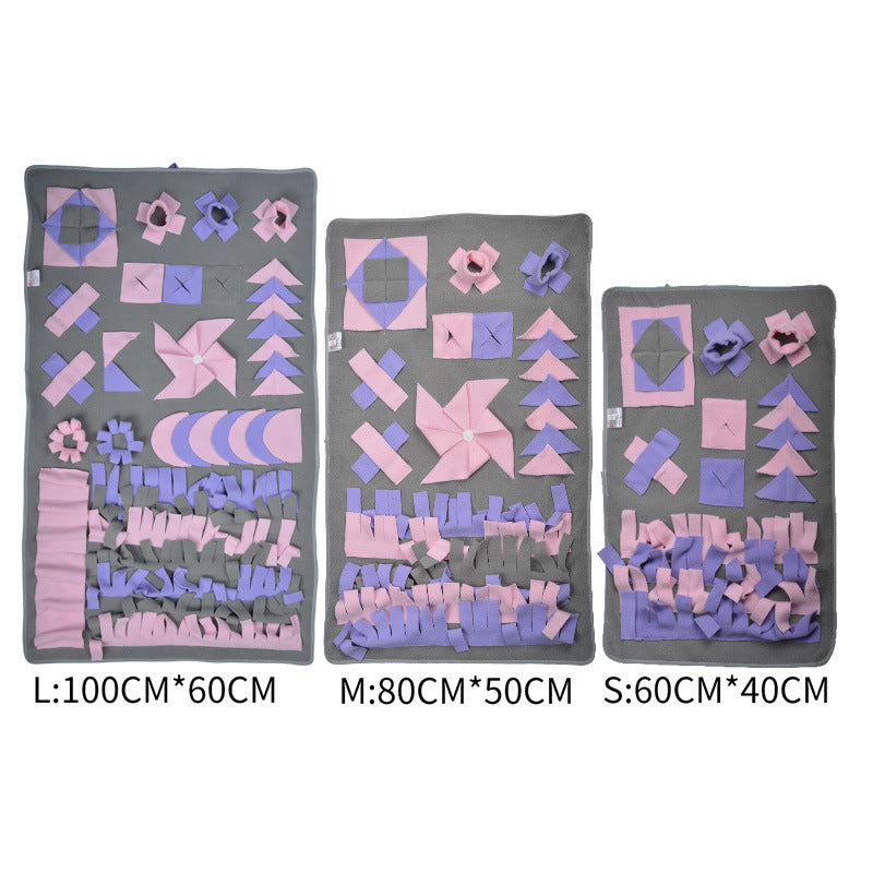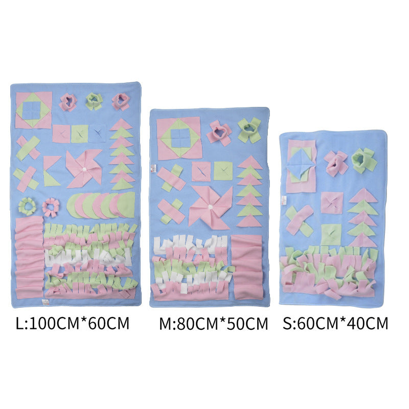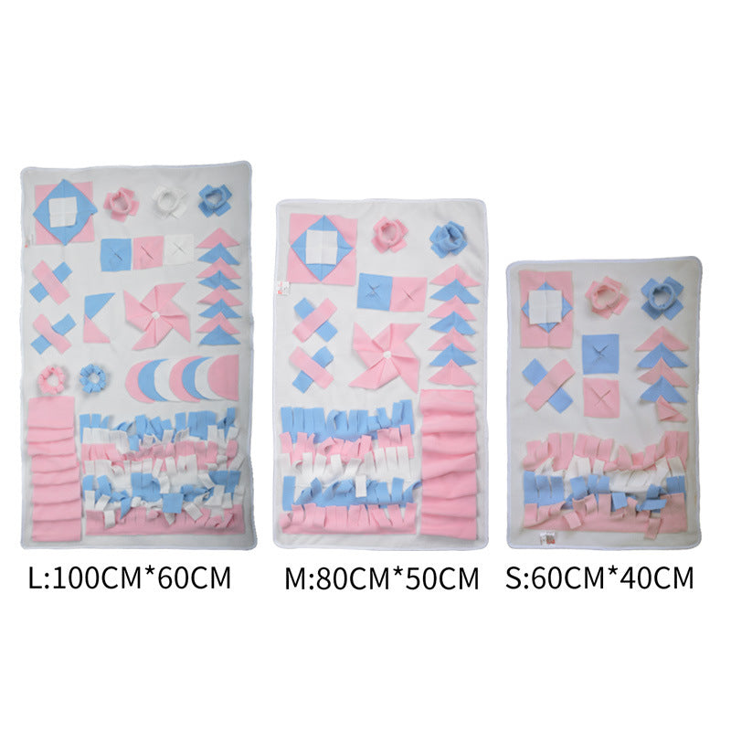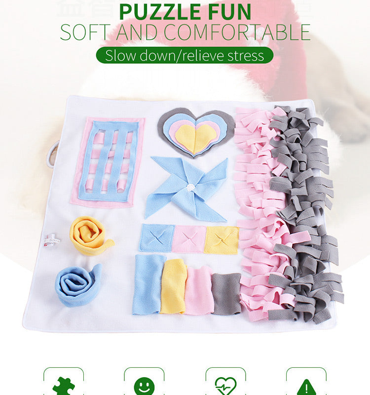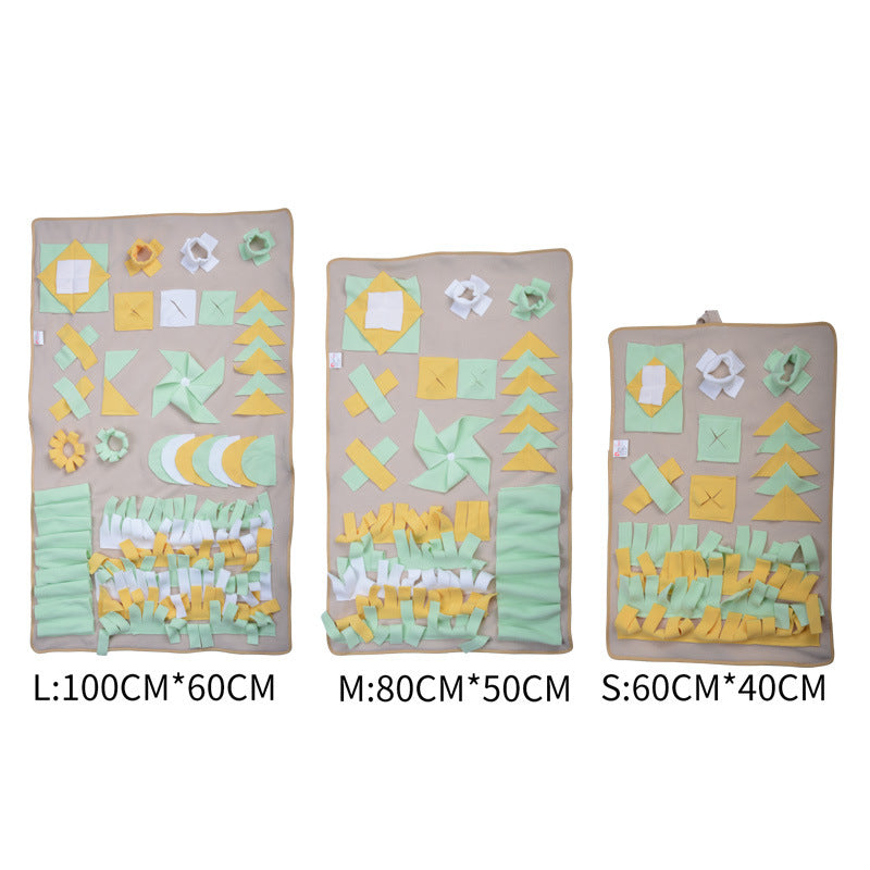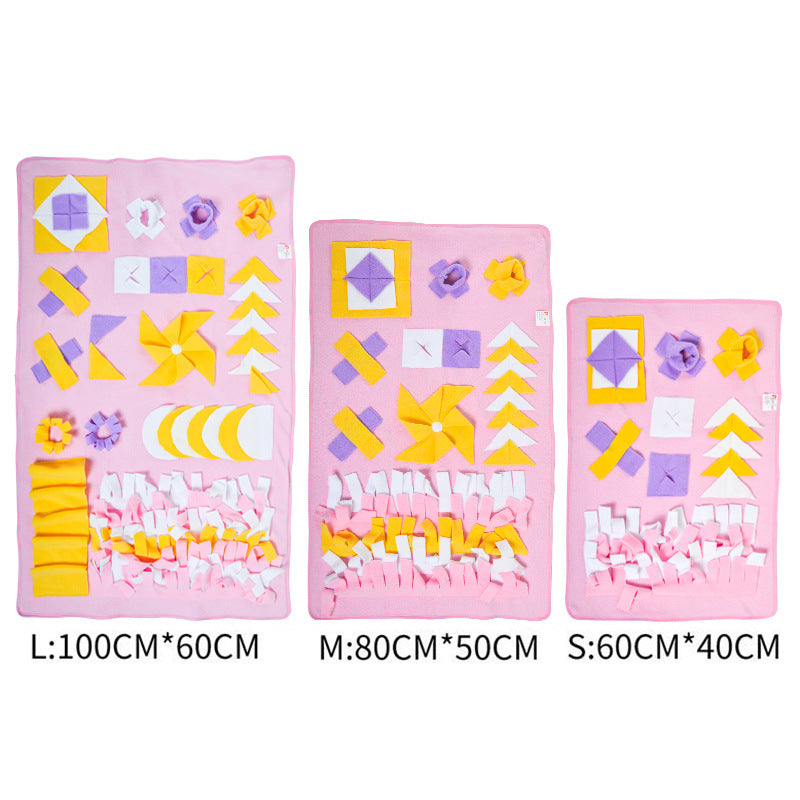The Pet Sniffing Mat is the perfect training tool for your furry friend. Made with high-quality coral fleece material, this mat is not only soft and comfortable but also durable and bite-resistant. It is designed to stimulate your dog's natural instincts and provide mental stimulation, making it an ideal puzzle toy for dogs of all sizes.