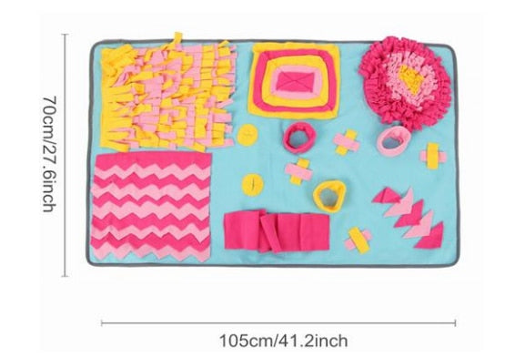 Introducing the Pet Dog Snuffle Mat, the perfect training tool for your furry friend! This innovative fleece mat is designed to engage your dog's sense of smell, allowing them to use their natural instincts to find hidden treats. With detachable fleece pads, this mat offers endless opportunities for fun and interactive play.