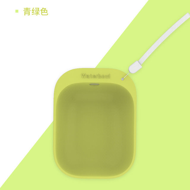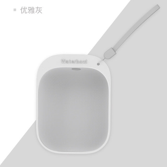 A portable water bottle for pets, specifically dogs and cats, that can be used for outdoor activities. The item is made of plastic, has a volume of 100g, and is suitable for all dog breeds.