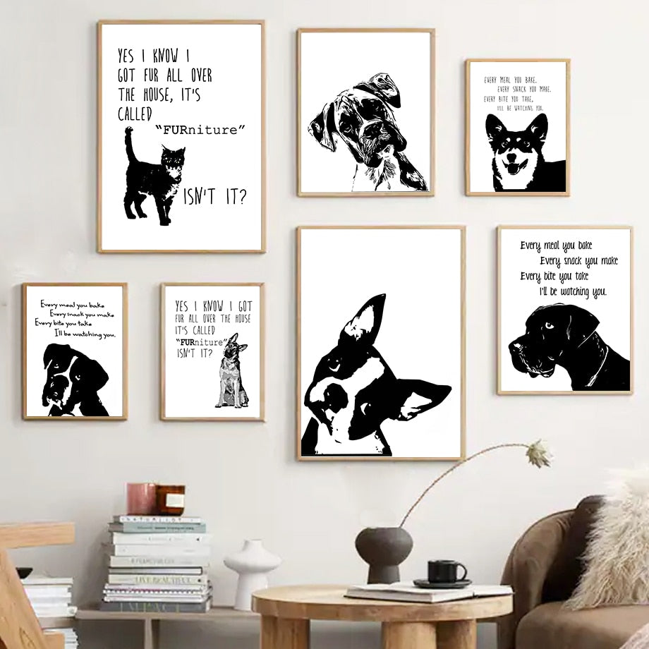 Elevate your home decor with our Pet Shop Decor Picture Dog Canvas Painting. Order now and experience the beauty of this frameless, customizable artwork. Let this black and white animal wall art become the focal point of your interior design, adding a touch of elegance and sophistication to your living space.