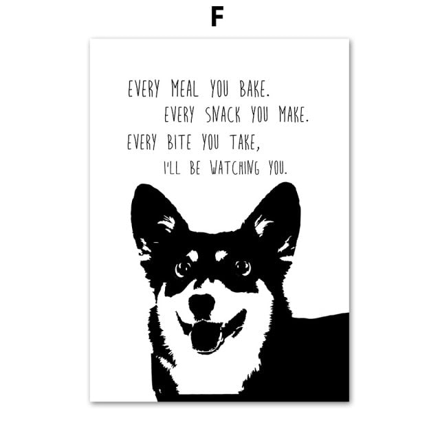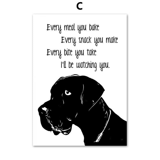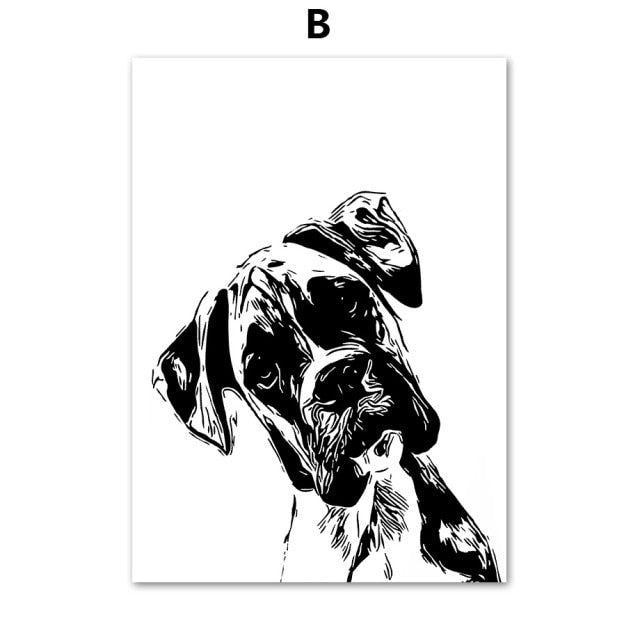 Pet Shop Decor Picture Dog Canvas Painting Black and White Animals Wall Art Frameless Minimalist Poster for Home Design