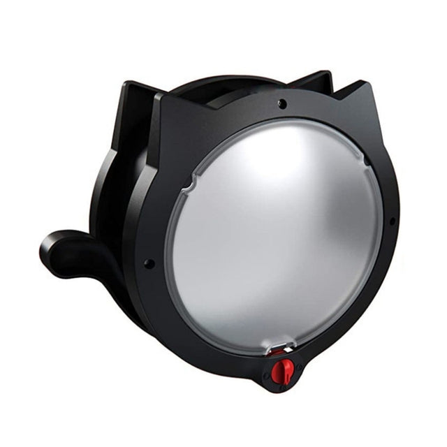 A small round cat door made of plastic with a 4-way lock that can also be used for dogs. It is safe and can be locked for security. It is a pet supply item and is specifically designed for cats.