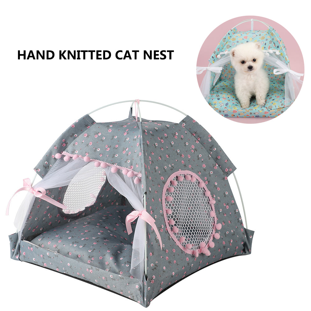 Pet Tent Portable Bed Double-sided Seat Mat For Summer & Winter Dog Cat Playing Bed Cushion Waterproof Folding House Kennel Bed