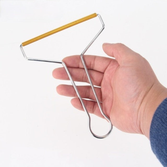 A portable cleaning tool that can be used to remove lint, pet hair, and fuzz from fabrics such as sweaters, coats, and sofas. The tool is made of stainless steel and magnesium alloy and comes in three different colors. It is suitable for use on dogs.