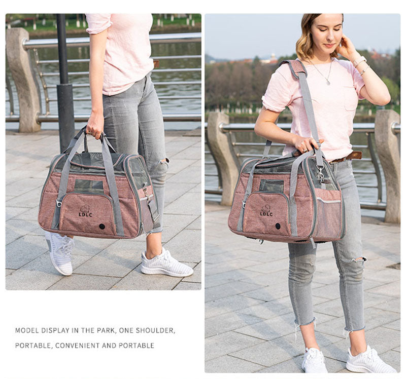 Available in two attractive colors, pink and gray, this carrier is not only functional but also stylish. It adds a touch of fashion to your pet's travel gear. The sturdy oxford material, along with the breathable mesh and soft pad, ensures that your pet feels comfortable and secure inside the carrier.