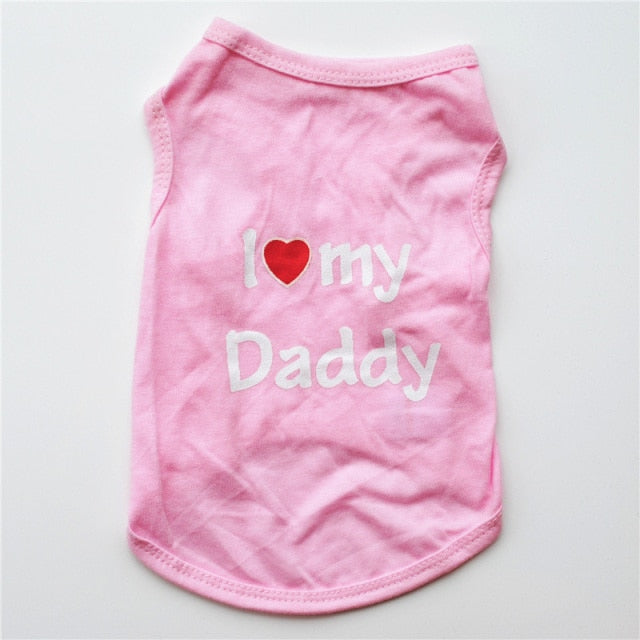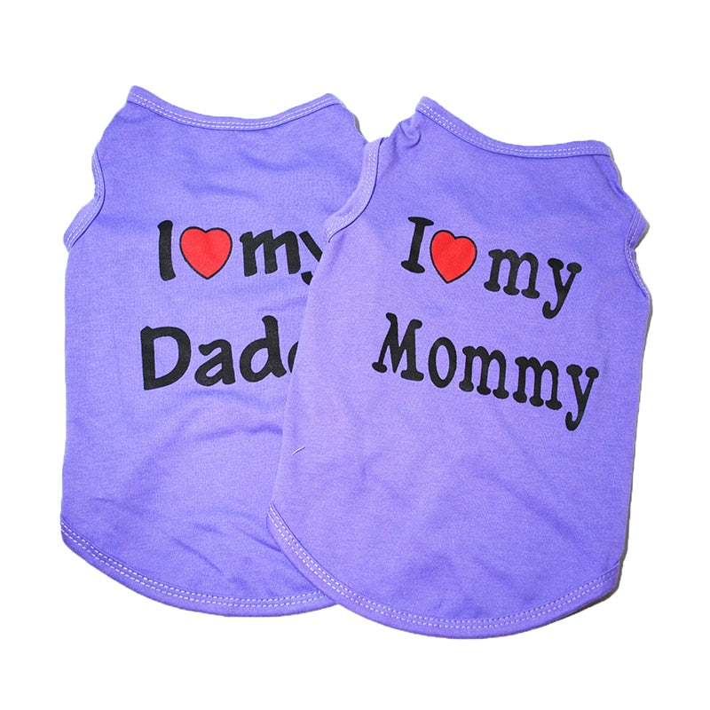 Classic Love Mommy & Love Daddy Print Dog Vest Unisex Puppy Cat T Shirt Sleeveless Clothing Cute Dogs Clothes For Small Doggy