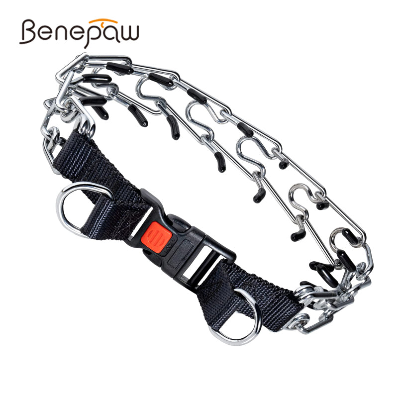 Benepaw Prong Dog Collar Adjustable Stainless Steel Quick Release Rubber Tips Choke Pinch Training Pet Collar Locking Carabiner