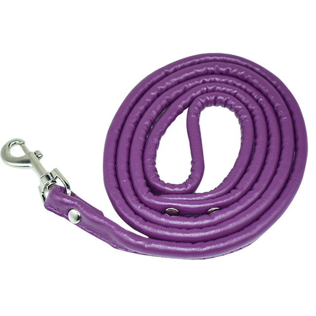A PU leather dog leash that comes in various colors and is suitable for small and medium dogs and cats. It is 120cm long and 1cm wide, with a quick release and breakaway feature. It is made of imitation leather and is suitable for all seasons. It is strong and suitable for training and walking. The leash weighs 55g.