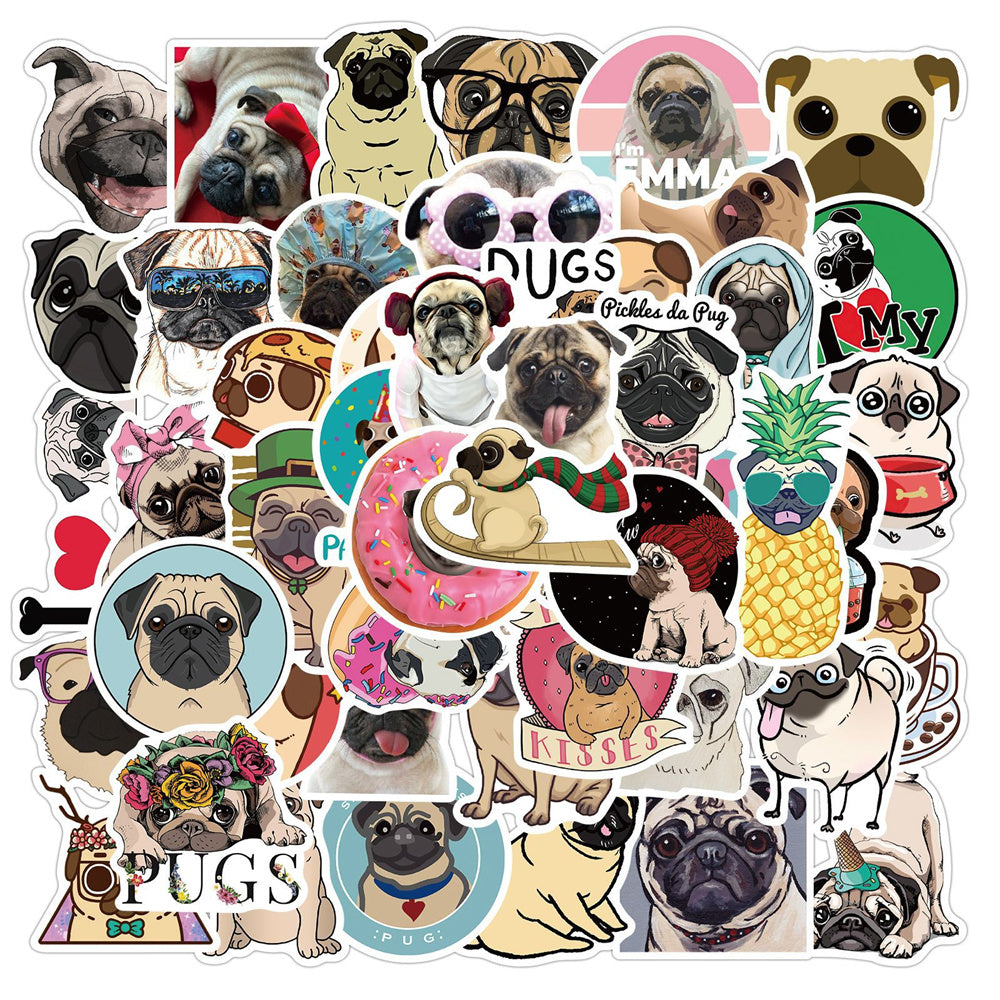 50 pieces Pug Dog Stickers For Notebooks Computer Stationery Cute Kawaii Stickers Aesthetic Scrapbooking Material Craft Supplies
