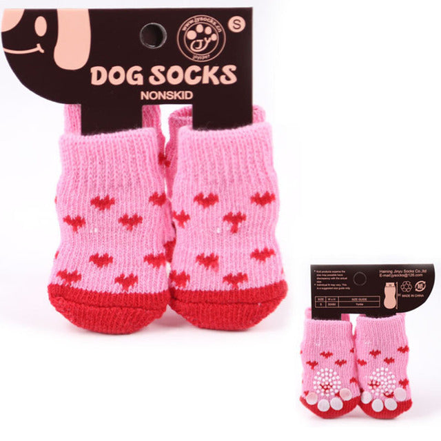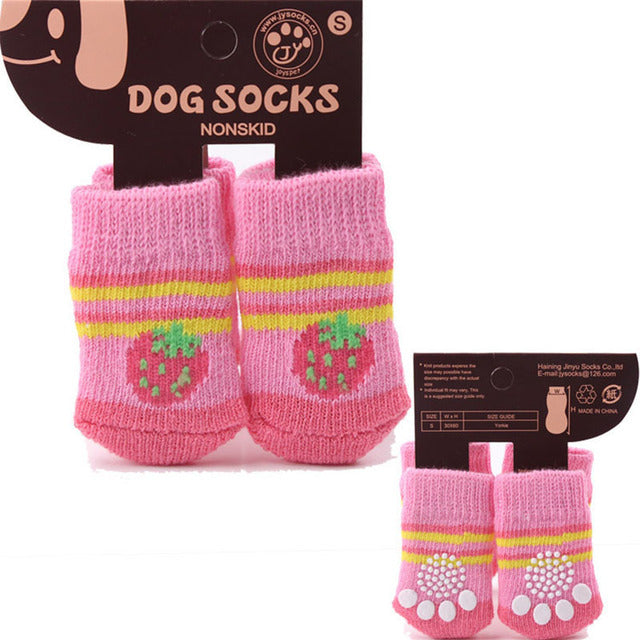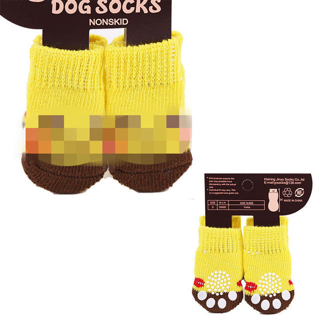 4 pieces Warm Puppy Dog Shoes Soft Pet Knits Socks Cartoon Anti Slip Skid Socks Small Dogs Breathable Pet Products Indoor Wear Boot