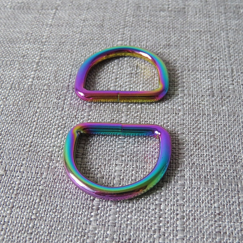 So why wait? Add a touch of style and functionality to your DIY projects with our 25mm Rainbow Metal D Ring Buckle. Whether you're creating a handbag, belt, or pet accessory, this metal buckle is sure to enhance your creations with its unique design and vibrant rainbow color. Order yours today and let your creativity shine!