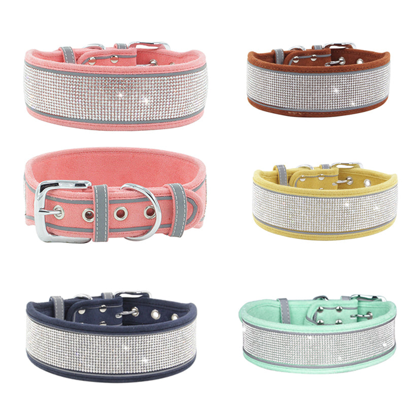 Reflective Pet Dog Collar Rhinestone Adjustabel Suede Mascotas Accessories for Small Medium Dogs Chihuahua Puppy Cat Collars