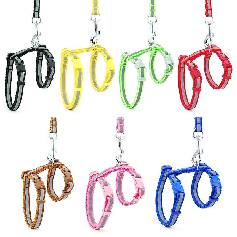 Reflective Nylon Cat Pet Collar Harness Leash Adjustable Bright Kitten Puppy Halter Collar Dog Pet Harness Belt
