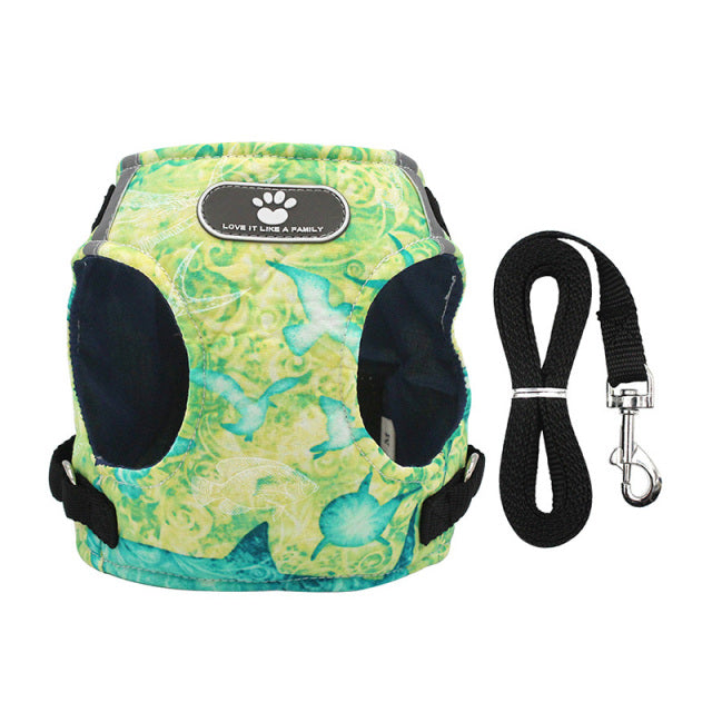 Featuring a vibrant print pattern and equipped with reflective strips, this harness and leash set not only ensures your pet's safety but also adds a touch of style to their daily walks. The reflective strips provide increased visibility during low light conditions, making it ideal for evening or early morning walks.