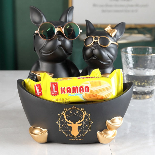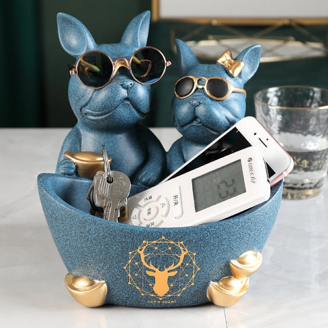 Creative Resin Lover Bulldog Dog Statue Animal Sculpture Storage Decoration Home Living Room Decor Figurine Accessories Gift Art