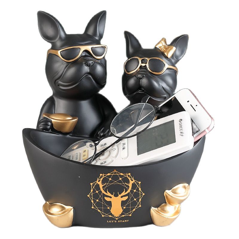 In conclusion, this creative resin lover bulldog dog statue is not just a decoration, but also a functional storage solution and a unique gift option. Its animal theme, high-quality resin material, and European regional feature make it a must-have for any home. Elevate your home decor with this charming and versatile figurine that will surely leave a lasting impression.