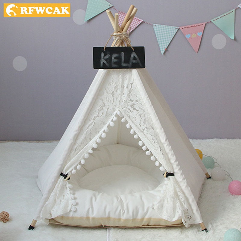 Lace Pet Tent Dog House Washable Winter Tent Puppy Bed Cat Kennel Portable Teepee With Cushion Kattenmand Pet Supplies