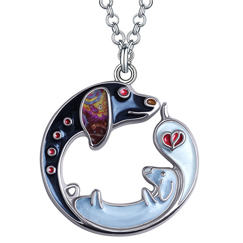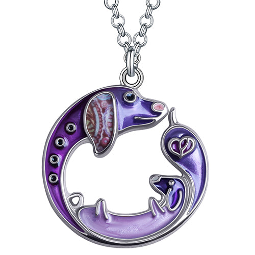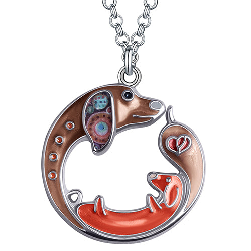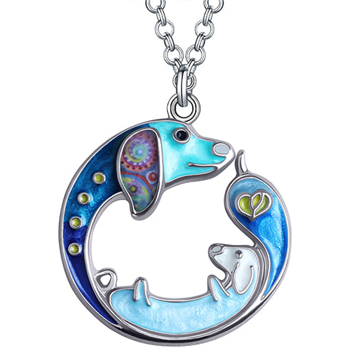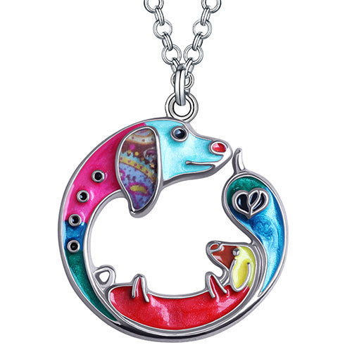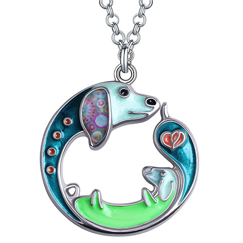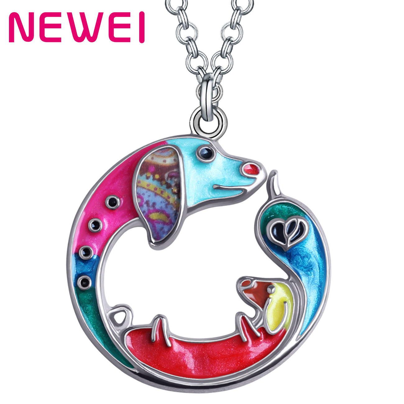 NEWEI Enamel Alloy Round Cute Dachshund Dog Necklace Pendant Gifts Pets Fashion Jewelry for Women Teens Girls Charms Accessories