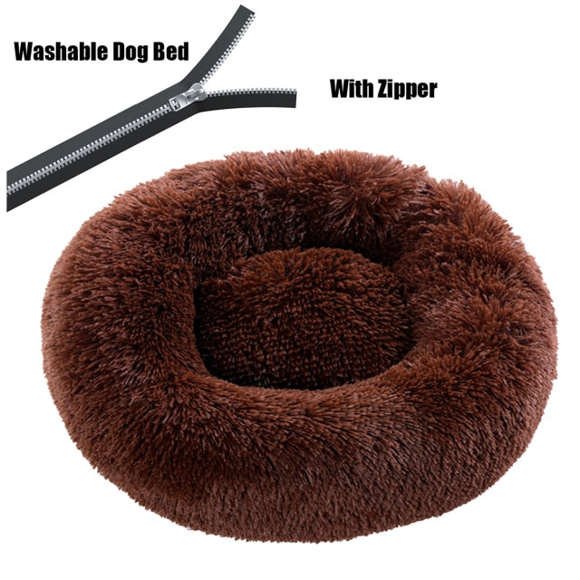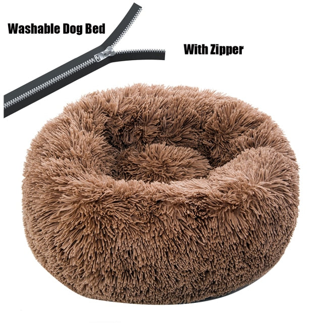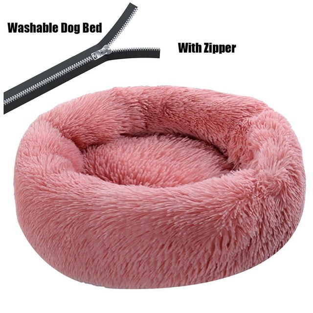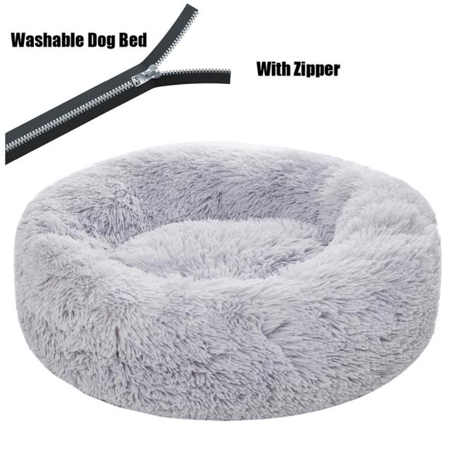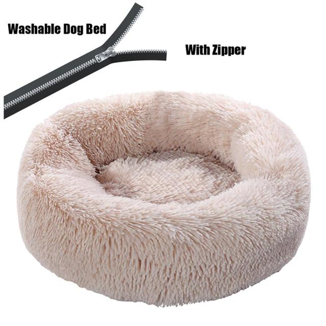 Round Plush Dog Bed with Zipper House Dog Mat Winter Warm Sleeping Cats Nest Soft Long Plush Dog Basket Pet Cushion Portable