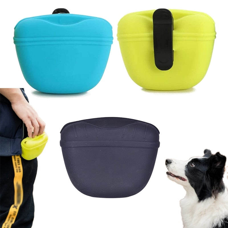 Silicone Dog Treat Pouch Pet Portable Dog Training Waist Bag Convenient Magnetic Buckle Closing Waist Clip Outdoor Feed Storage
