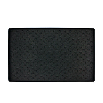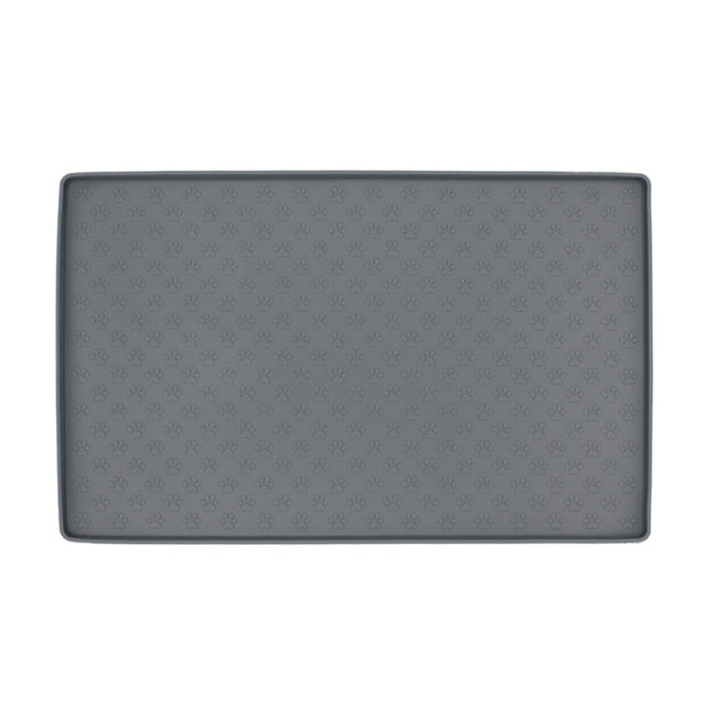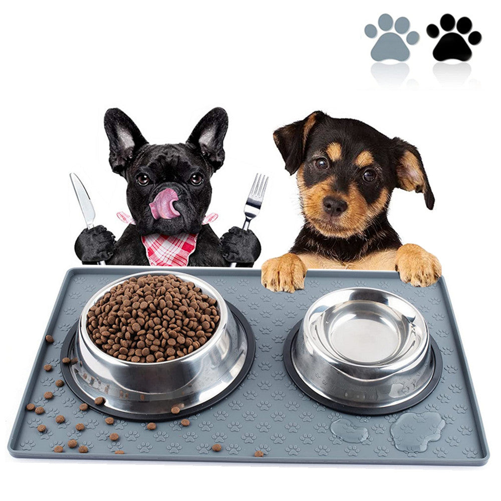 The mat comes in two sizes, small and large, to accommodate dogs and cats of all sizes. It is available in two stylish colors, black and gray, and features a cute paw print pattern that adds a touch of charm to your pet's feeding area.
