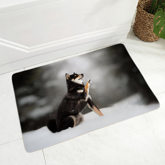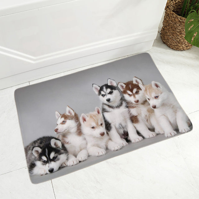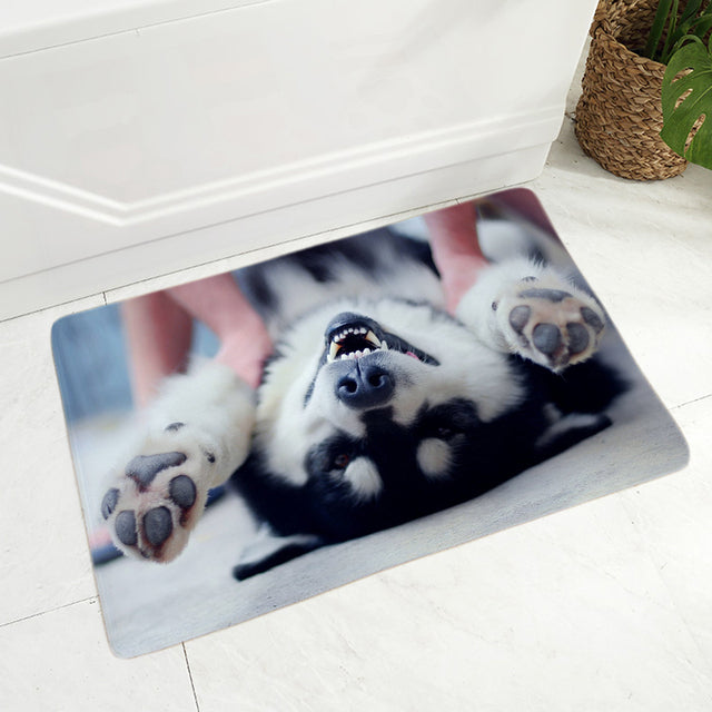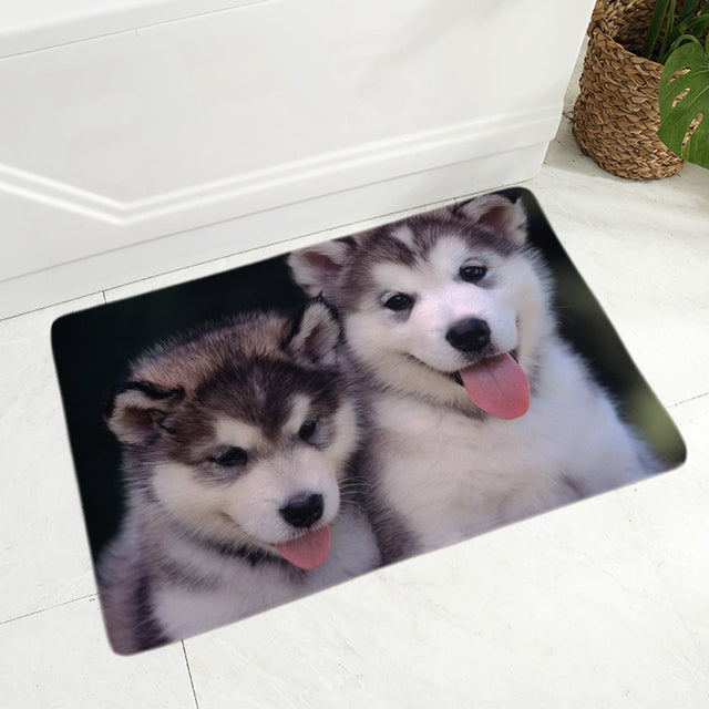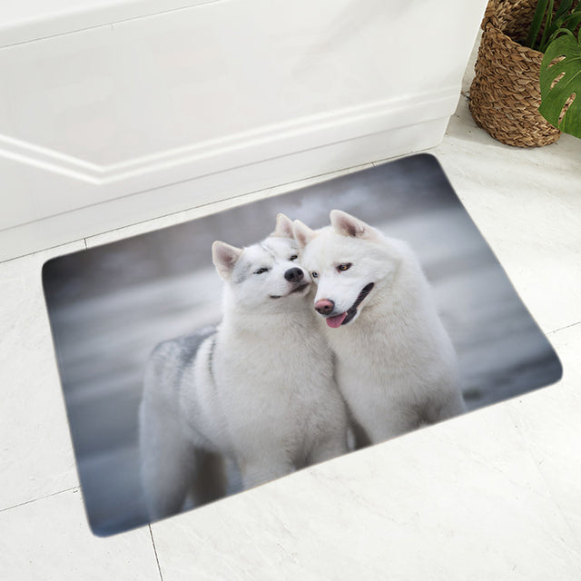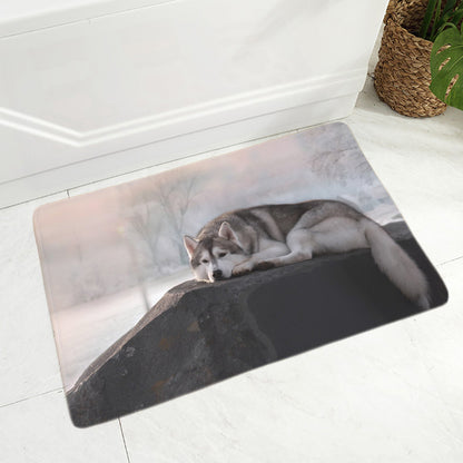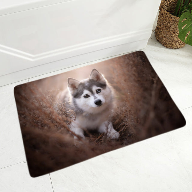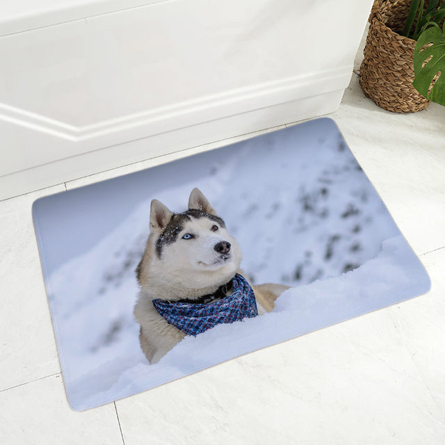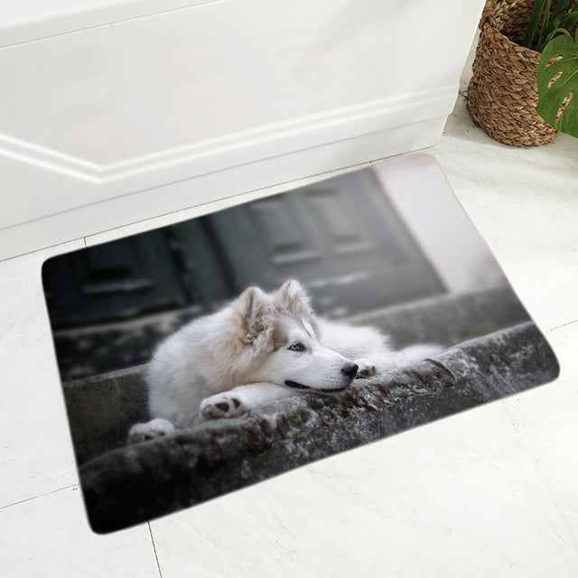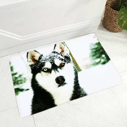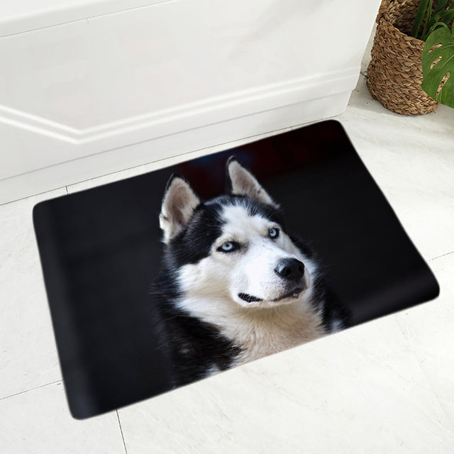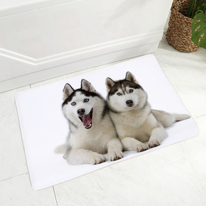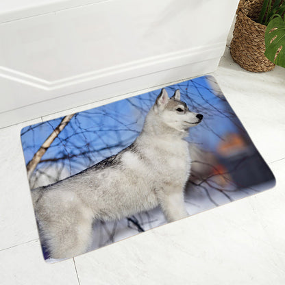 Soft Flannel Doormat Decor Siberian Husky Dog Door Mat Non-Slip Hallway Pet Animal Carpet Rug for Dining Room Bedroom Floor Mat