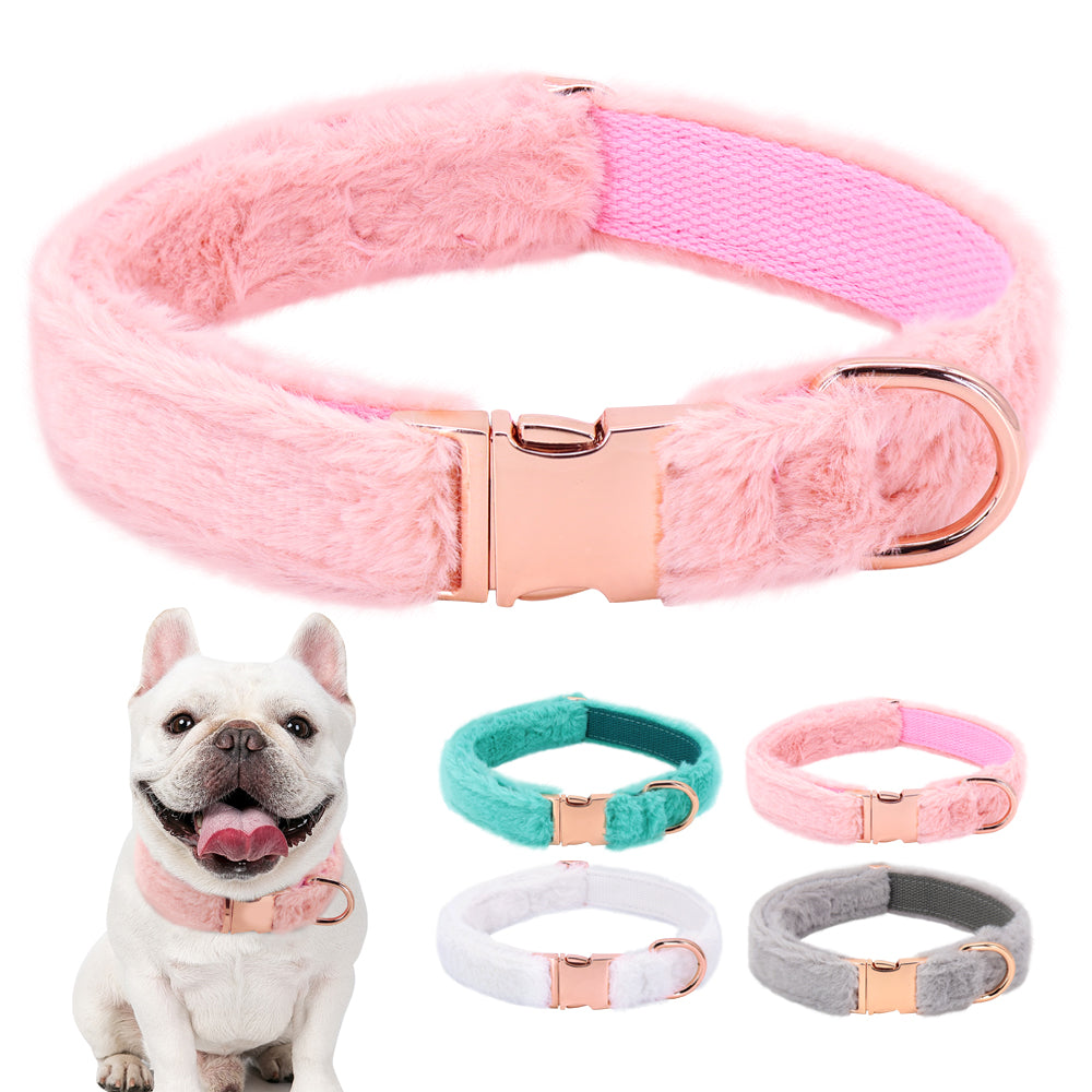Soft Fur Dog Collar Winter Warm Puppy Cat Necklace Adjustable Pet Collars For Small Medium Large Dogs French Bulldog Pug Pink