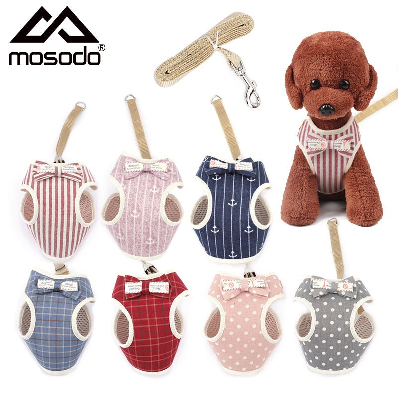 Mosodo Fashion Stripe Vest Cloth Chest Strap Small Dog Cat Halter Harness Lead Pet Puppy Leash Supplies S M L