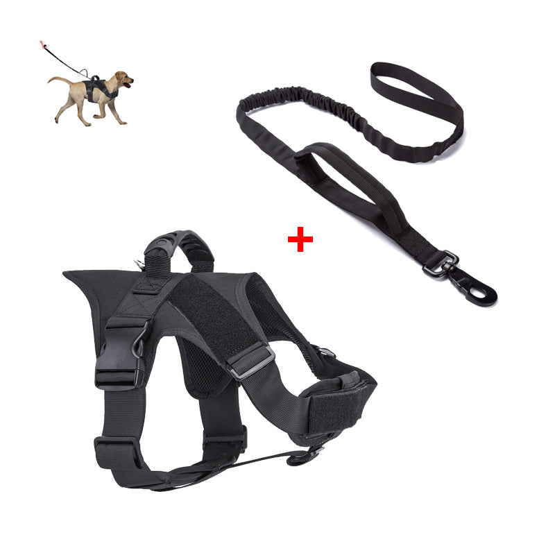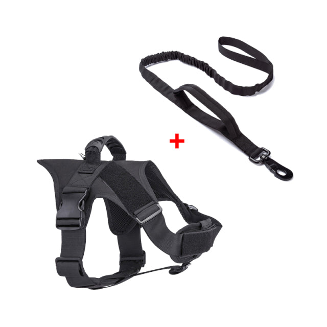 Tactical Dog Harness and Leash Set K9 Nylon Adjustable Vest Bungee Dog Leash Military with Handle Working Training Pet Clothes