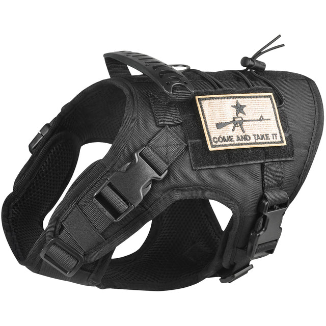 With its military MOLLE design, this harness is not only functional but also stylish. The MOLLE system allows you to attach additional accessories or pouches, making it convenient for carrying essentials such as water bottles, treats, or waste bags. This ensures that you have everything you need for a successful training session or outdoor excursion.