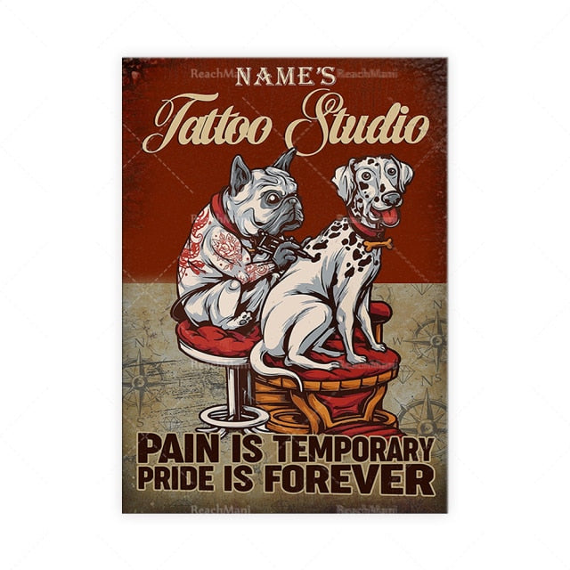 Tattoo studio, funny tattoo dog, pain is temporary, pride is forever, personalized poster, poster art, wall art, wall decoration