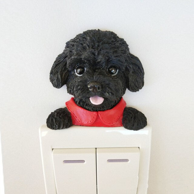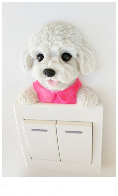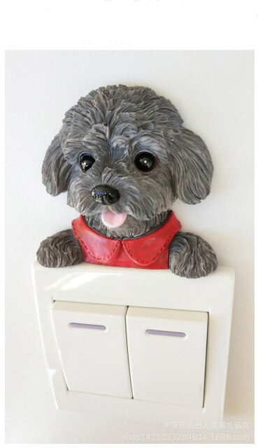 Transform your living space with this unique and charming wall sticker. Its versatility, durability, and adorable design make it a must-have accessory for any room. Add a touch of cuteness and style to your home with this Teddy Dog Resin Switch 3D Wall Sticker.