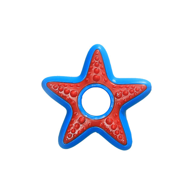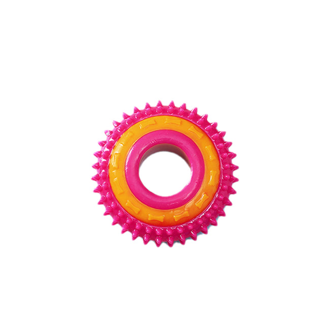 A chew toy made of rubber for teething small dogs, with a variety of colors to choose from. It is suitable for breeds such as Yorkshire, Shih Tzu, and Maltese. It is designed for safe and enjoyable playtime for pets.