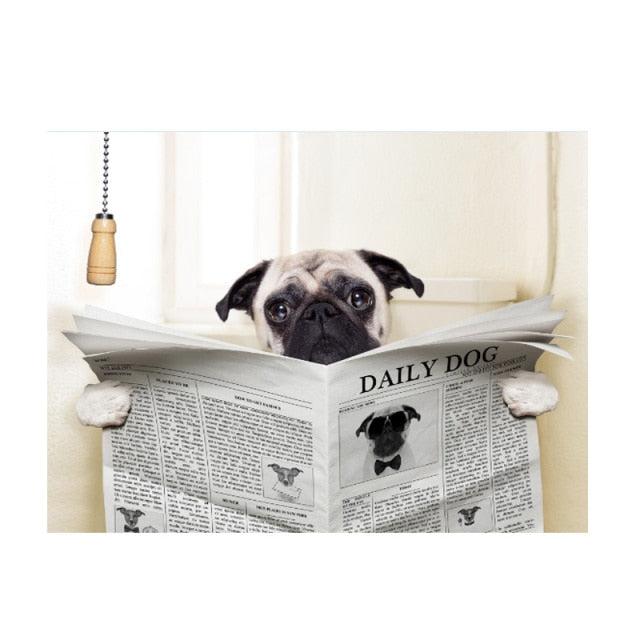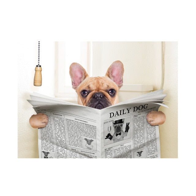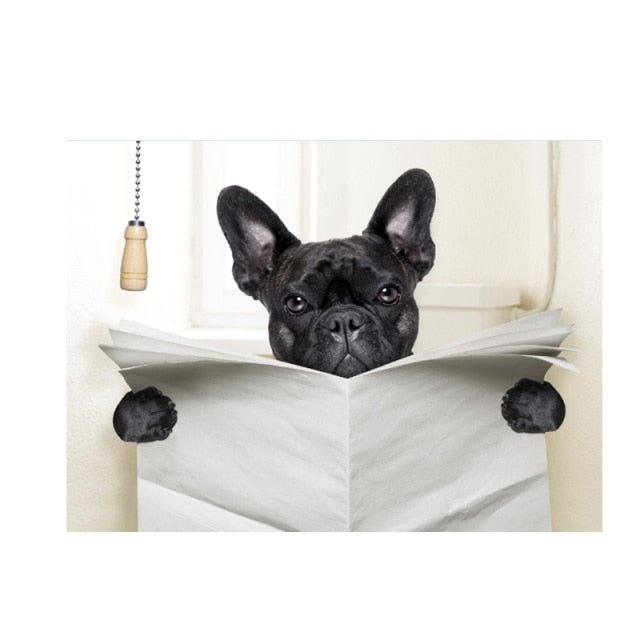 Toilet Decor Wall Art Cute Dog Canvas Painting Animal Posters and Prints Wall Pictures for Nursey Kitchen Kids Room Decoration