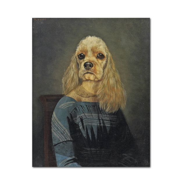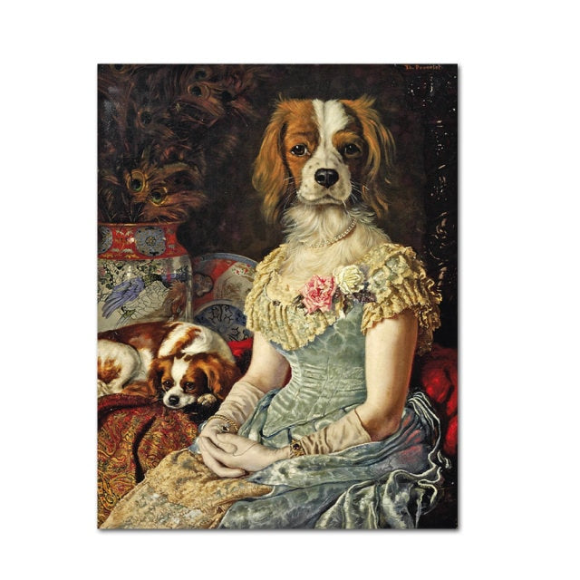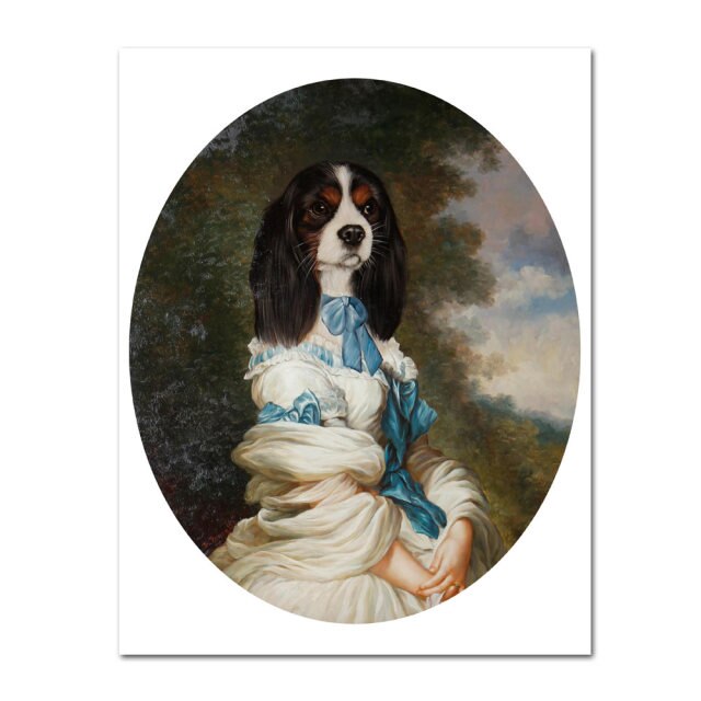 In summary, this Vintage Art Poster Dog Animals Retro Nostalgia Gentlewoman Oil Painting Print Wall Canvas Picture is a beautiful and unique addition to your living room or any other room in your home. Its vintage charm, retro style, and animal subject make it a perfect choice for those who appreciate art and want to add a touch of nostalgia to their home decor.