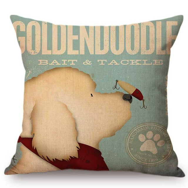 Vintage Dog Poster Art Home Decorative Sofa Throw Pillow Case Vizsla Labrador Goldendoodle Golden Retriever Linen Cushion Cover