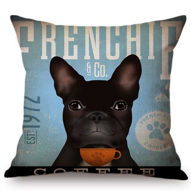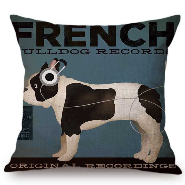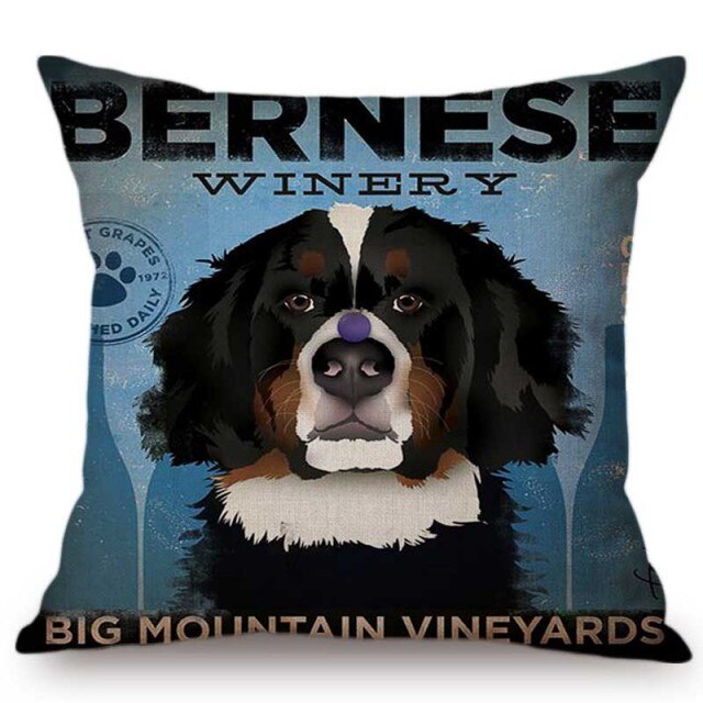 This is a decorative pillowcase made of linen/cotton with a printed animal pattern (including dog breeds such as Vizsla, Labrador, Goldendoodle, Golden Retriever, French Bulldog, Poodle, Bernese, Border Collie, Hound, and Golden Shepherd Dog). It is woven and square in shape, with one side print and a natural linen backside. It is available for customization and wholesale, and weighs 0.1kg. The package size is 23cm x 23cm x 1cm. It can be used on sofas, seats, chairs, and in cars.