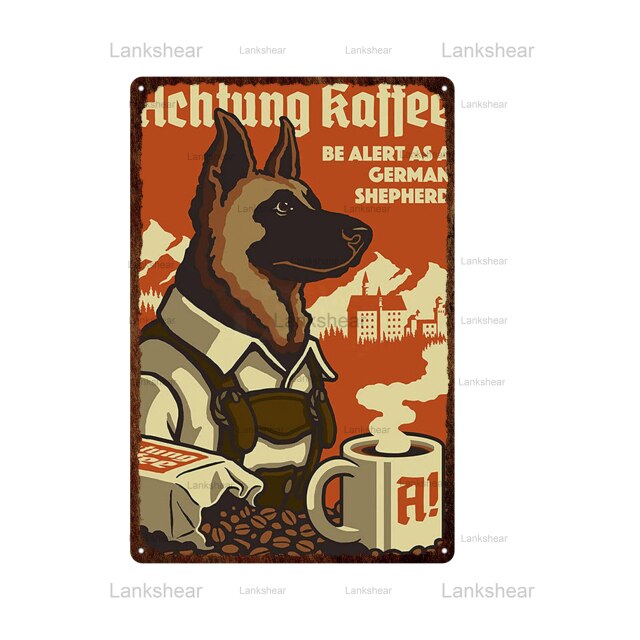 This product is not customized, but its American style ensures that it will fit seamlessly into any interior design theme. Whether you're a pet lover, a vintage enthusiast, or simply looking to add some character to your space, this metal poster is the perfect choice.