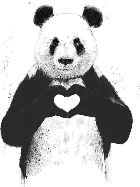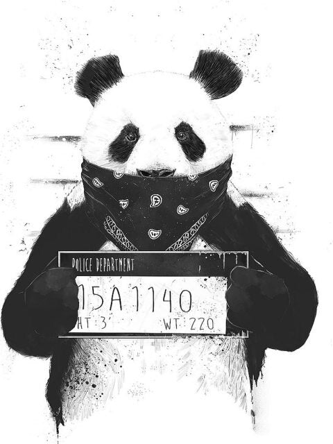 A canvas print of a cartoon animal, either a panda or a dog, in black and white. It is available in various sizes and is meant for home decor, such as in living rooms or bedrooms. The canvas is not framed and will be rolled in a PVC tube for shipping. The print is customizable and made from high-quality canvas with high-definition digital printing.