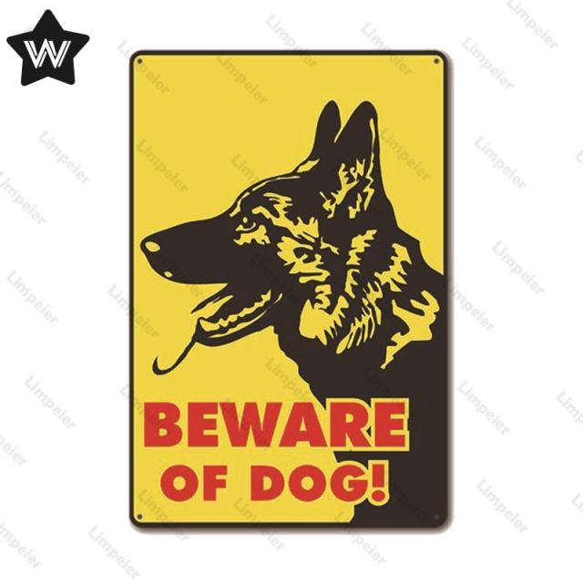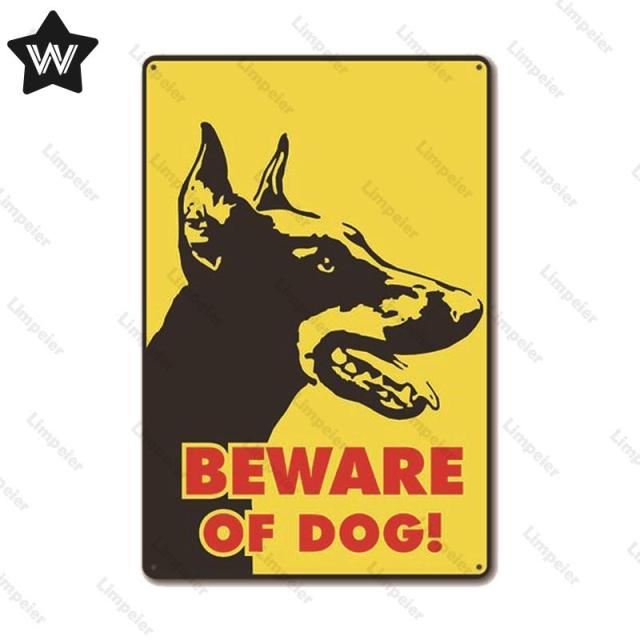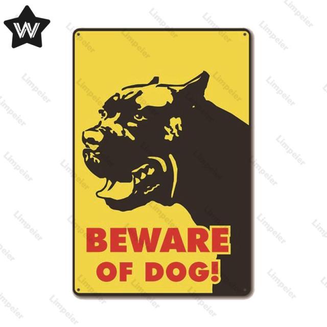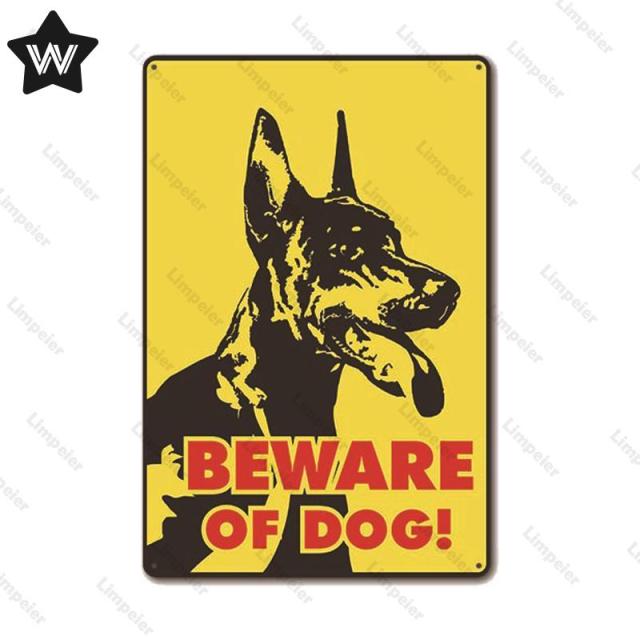 Warning Metal Sign Beware of Dog Tin Plate Caution Dog Metal Poster Vintage Wall Sticker Tin Plaque for Garden Door Warning Sign