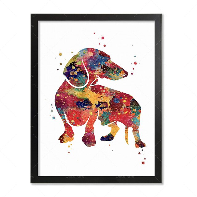 This set of watercolor posters is the perfect addition to any home decor. Featuring adorable dachshunds, also known as sausage dogs or doxies, these posters are sure to bring a smile to any pet lover's face. The posters are printed on high-quality canvas and come unframed, allowing you to customize the framing to suit your personal style.