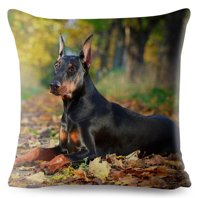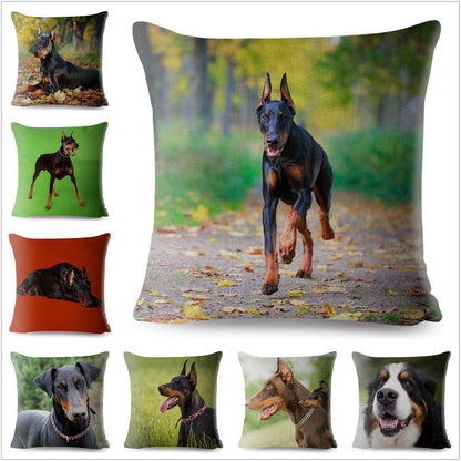 Wisdom Germany Doberman Dog Print Throw Pillow Cover 45*45 Square Cushion Cover Linen Pillow Case Sofa Home Decor Pillows Cases