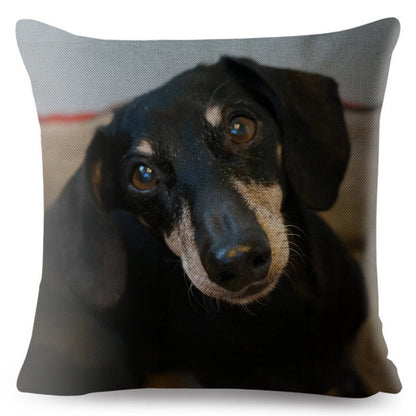 This cushion cover is not only a decorative item but also a functional one. It can be used on sofas, chairs, car seats, and even on beds. The cushion cover is especially suitable for those who love animals and want to add a touch of nature to their home decor. The Doberman dog print is a great choice for those who love dogs and appreciate their loyalty, intelligence, and beauty.