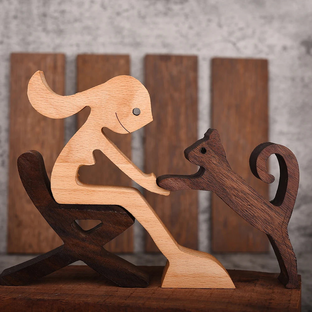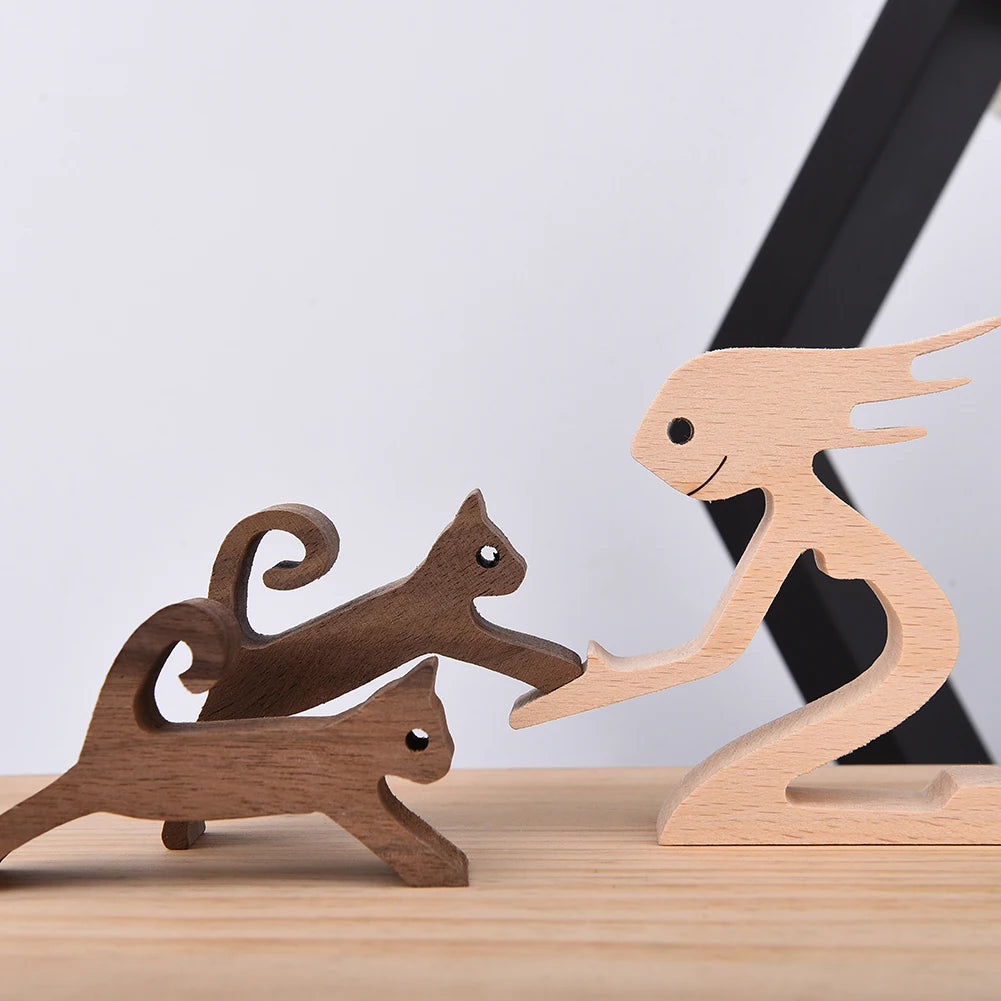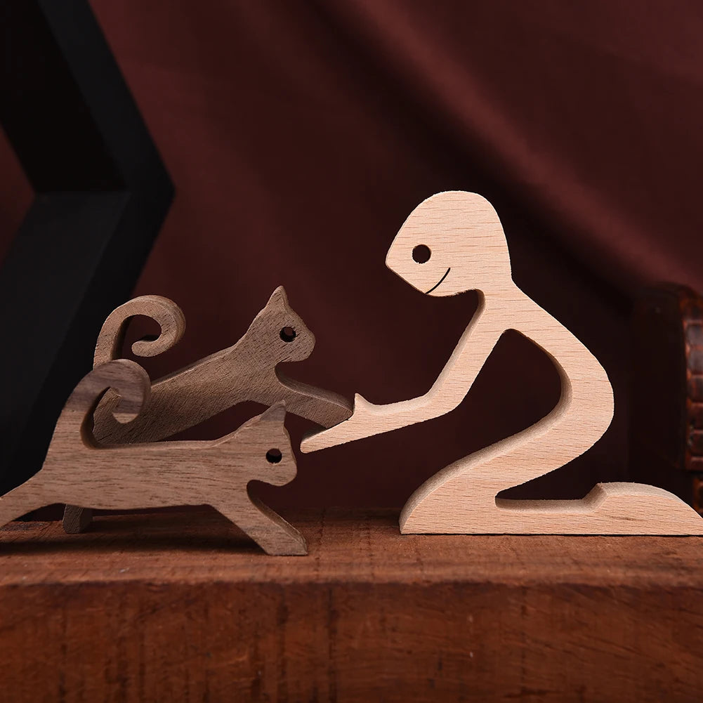 Wooden Pets Cat Figurine Home Decor Table Ornament Handmade Sculpture Craft Wood Natural Great Gifts for Friends